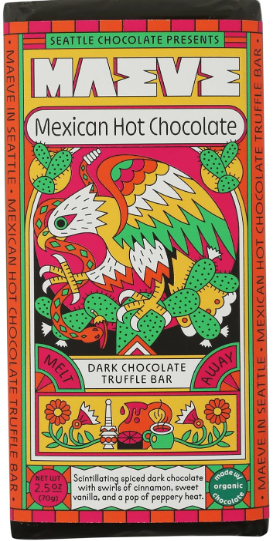 Maeve Chocolate prioritizes the planet by exclusively sourcing cocoa that is either Rainforest Alliance Certified or traded directly with farmers to ensure sustainable land stewardship. Maeve’s Mexican Hot Chocolate bar is certainly a fun and unique flavor with a bit of a spicy kick.